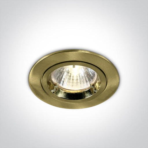 One Light10W MR16 GU10 Brushed Brass cylinder downlight. Complies with standard EN60598-1 and any other specific standards.